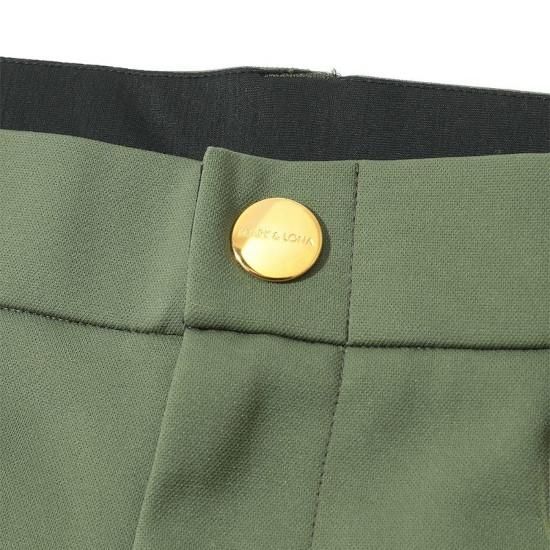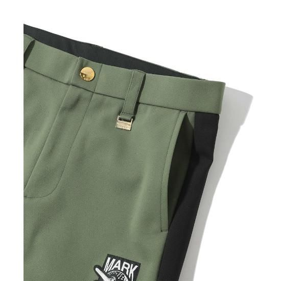 キックバック性に優れたスポーティ素材のジャストフィットバイカーパンツ。フロントにブランドロゴの刻印入りのドットボタン、左モモにエアプレンモチーフのネーム、右ヒップ部分にシリコン製のミニロゴワッペン、ベルトループにブランドロゴが刻印されたメタリックミニチャームをあしらいました。2WAYストレッチの素材特性を活かしたスマートなシルエットで、バイカー風の切り替えが脚のラインに沿って立体感を表現します。