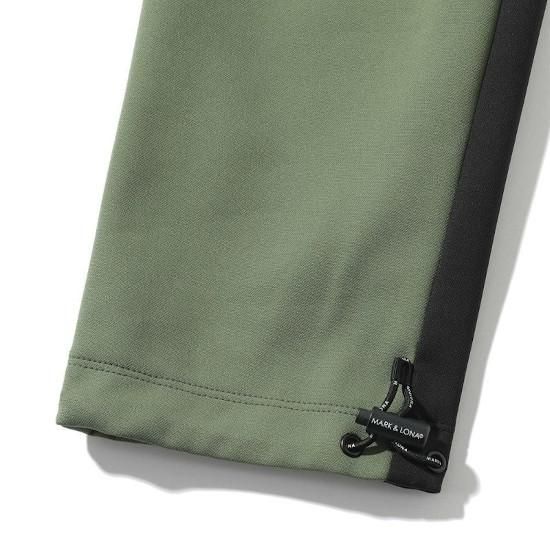 高ストレッチの機能糸を使用し、ハイゲージの編み機で特殊な組織に編み上げた素材を採用。軽さ、ハリ・コシ、高いストレッチ性が特徴で、シワになりづらく形状安定性にも優れています。裾にはスピンドル機能をもたせ、スタイリングやシューズに合わせて自由に調整が可能です。