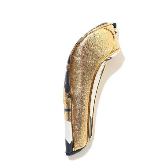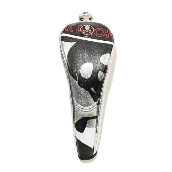 アイアンスカルとカモフラージュ柄をパネル状に大胆に並べてプリントしたデザインのフェアウェイウッドヘッドカバー。