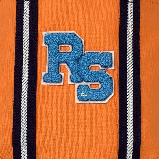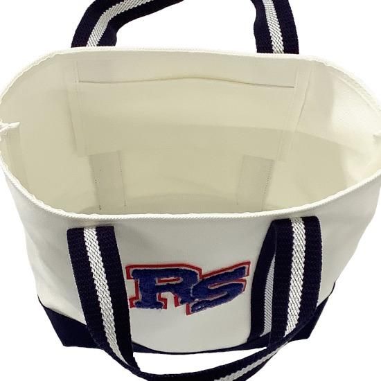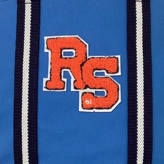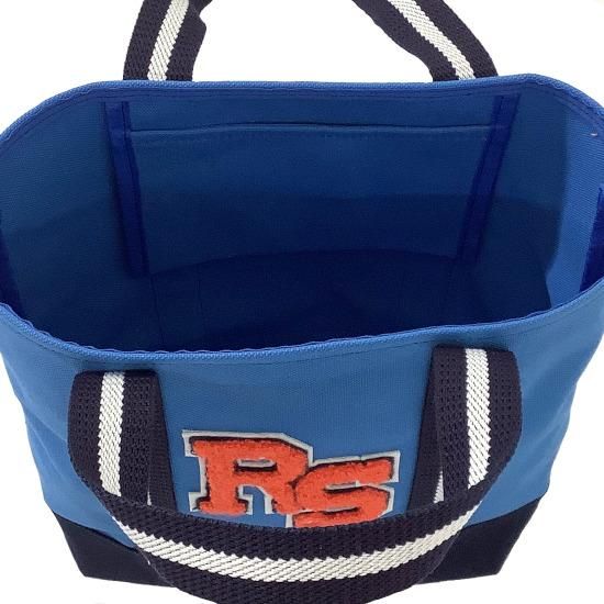 「RS」のサガラ刺繍ワッペンが目を惹く、コットンキャンバス素材を用いたカートバッグ。
