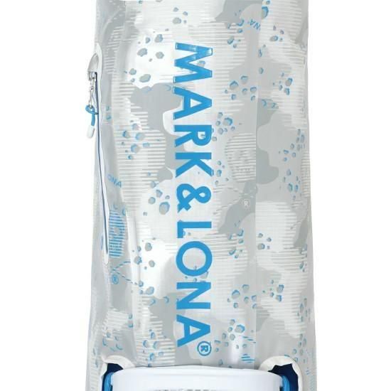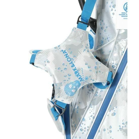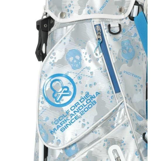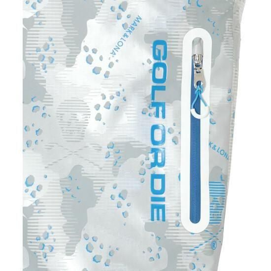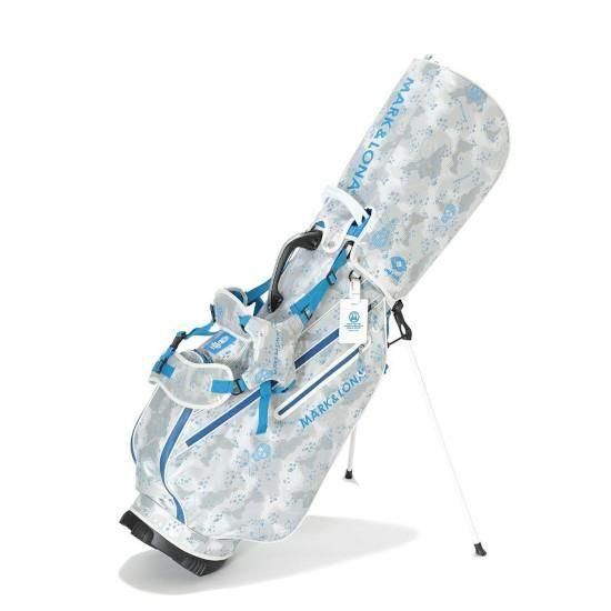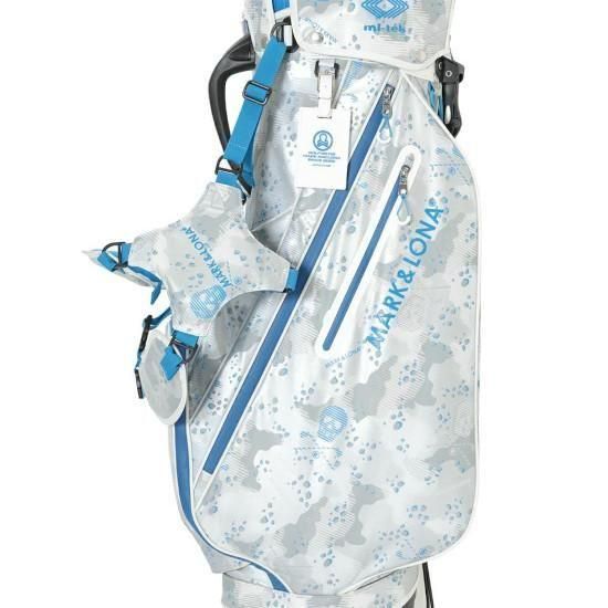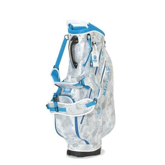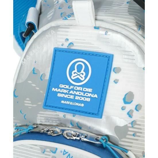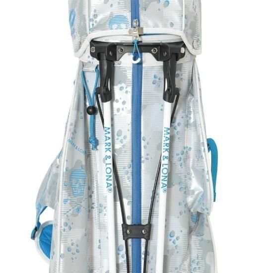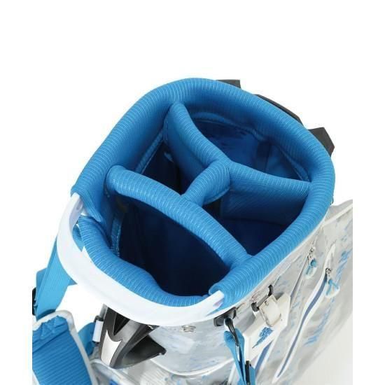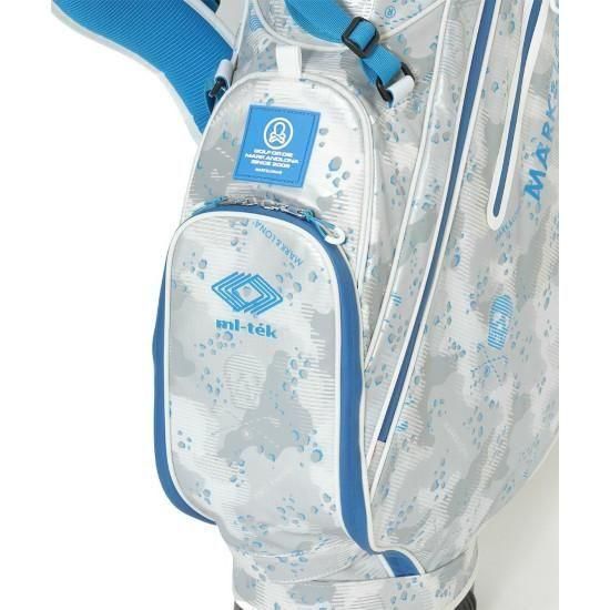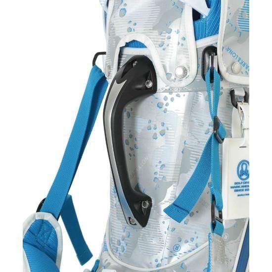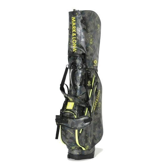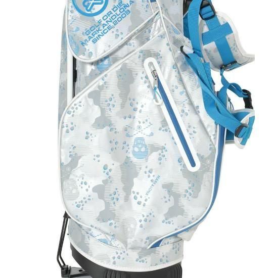 メタリックな輝きを放つスライドカモフラージュ柄が印象的な、軽量スタンドタイプのキャディバッグ。
