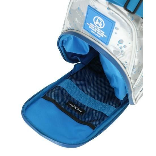 防水プリント生地に止水ファスナーや熱圧着のシームテープを施した高機能仕様で、突然の雨や湿気にも対応するテクニカルな仕上がりです。