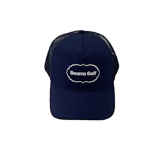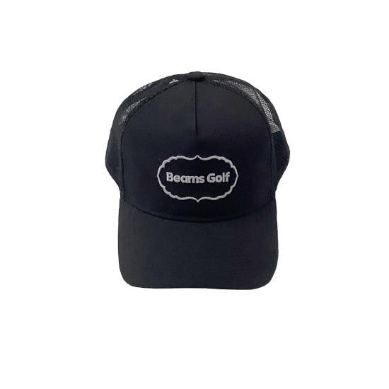 波打つような滑らかな楕円形のラインに囲まれた、力強いブロック体のブランドロゴが刺繍が目を惹くメッシュキャップ。