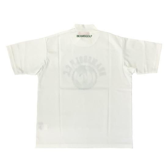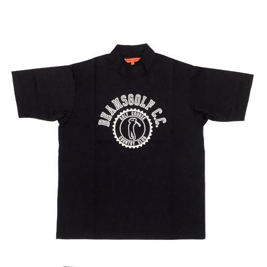 フロントに配したクラシカルなエンブレム調のフロッキーロゴが、程良いニュアンスを放つモックネックシャツ。