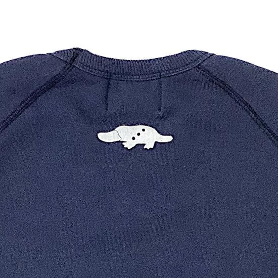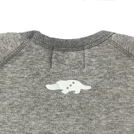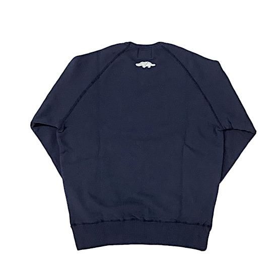 RED BUSのプリントが目を引くラグランスリーブの長袖スウェット。