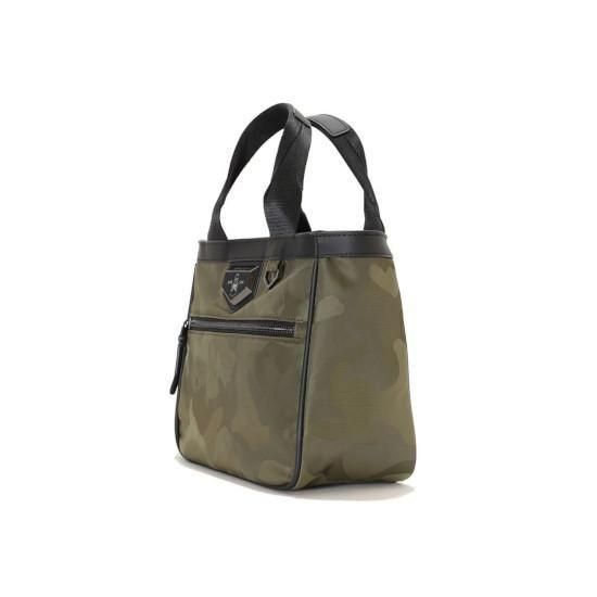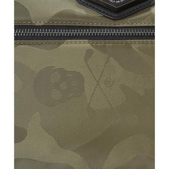 ブランドのシグニチャーであるスカルカモフラージュパターンが際立つカートバッグ。