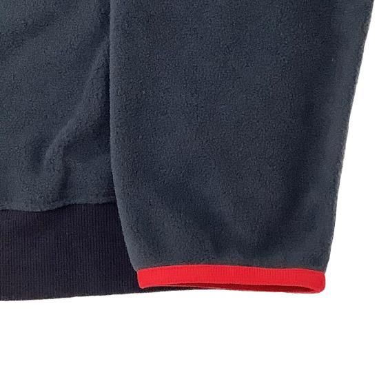 中抜きカレッジフォントと袖口のレッドバインダーが効いたスタイリッシュな1枚。