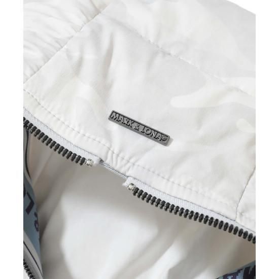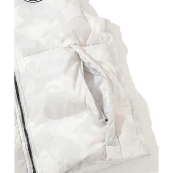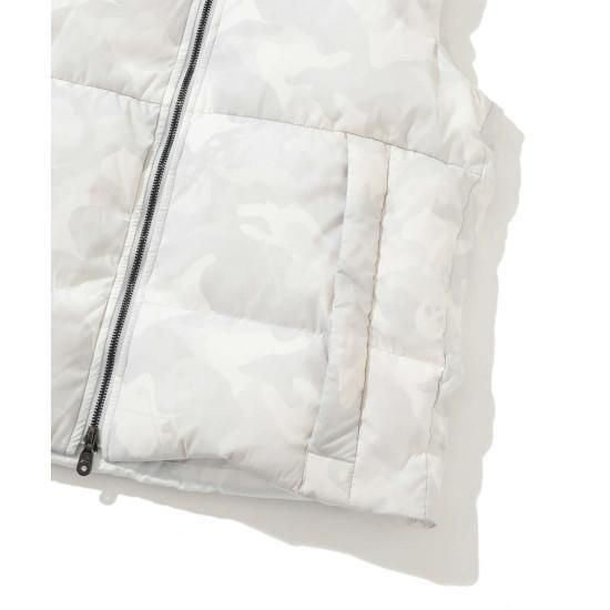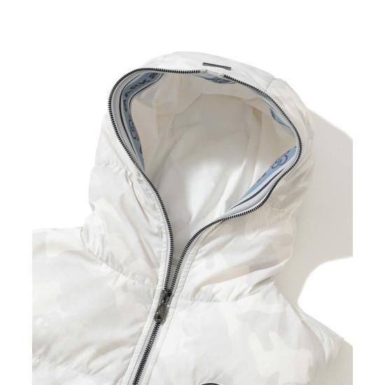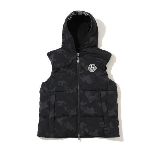 オリジナルカモフラージュパターンのフーデットダウンベスト。