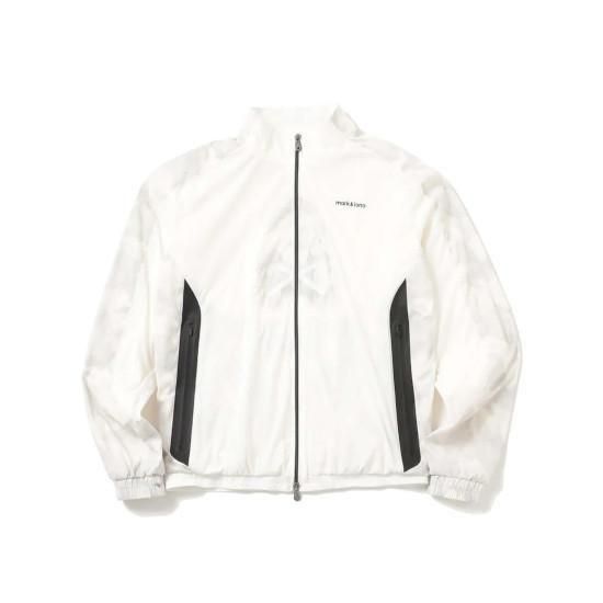 フロントのブランクスカルロゴが象徴的なカモフラージュパターンとソリッドコンビの機能性ジャケット。